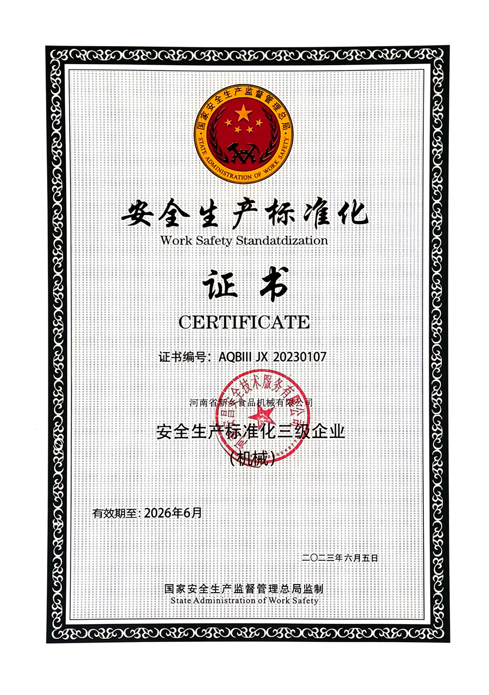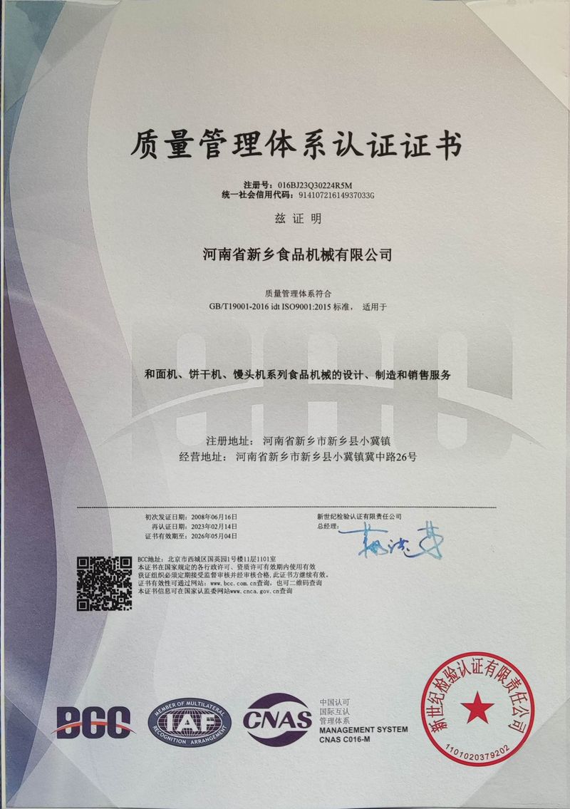 公司堅持以高品質、優(yōu)良的服務為宗旨,以用戶的需求和誠信為核心,為此贏得了廣大客戶的信賴和贊賞,市場占有率大幅度提高。1997年以來連續(xù)被河南省工商銀行評為AAA 級信用企業(yè),新鄉(xiāng)市技術監(jiān)督局授于計量信得過單位,公司產(chǎn)品連續(xù)經(jīng)國家飲食服務機械檢測檢驗中心、河南省質監(jiān)局、新鄉(xiāng)市質檢抽檢檢驗合格。2003年5月順利通過1SO9001國際質量體系認證。