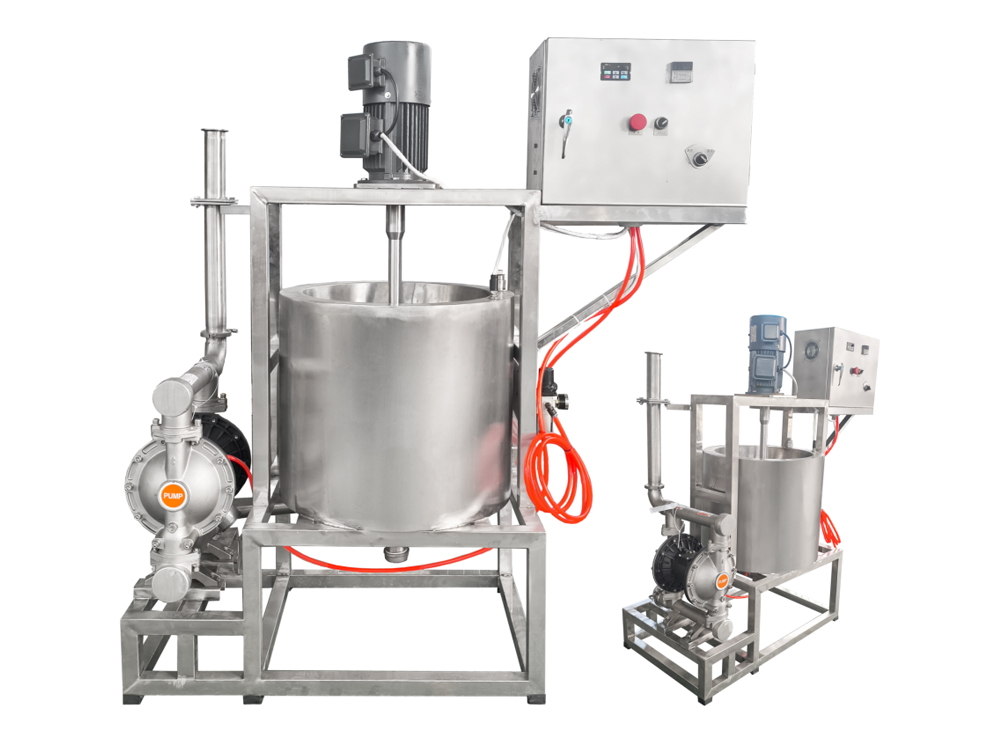 將糖粉加熱并攪拌成糖漿,自動供給噴糖機使用。