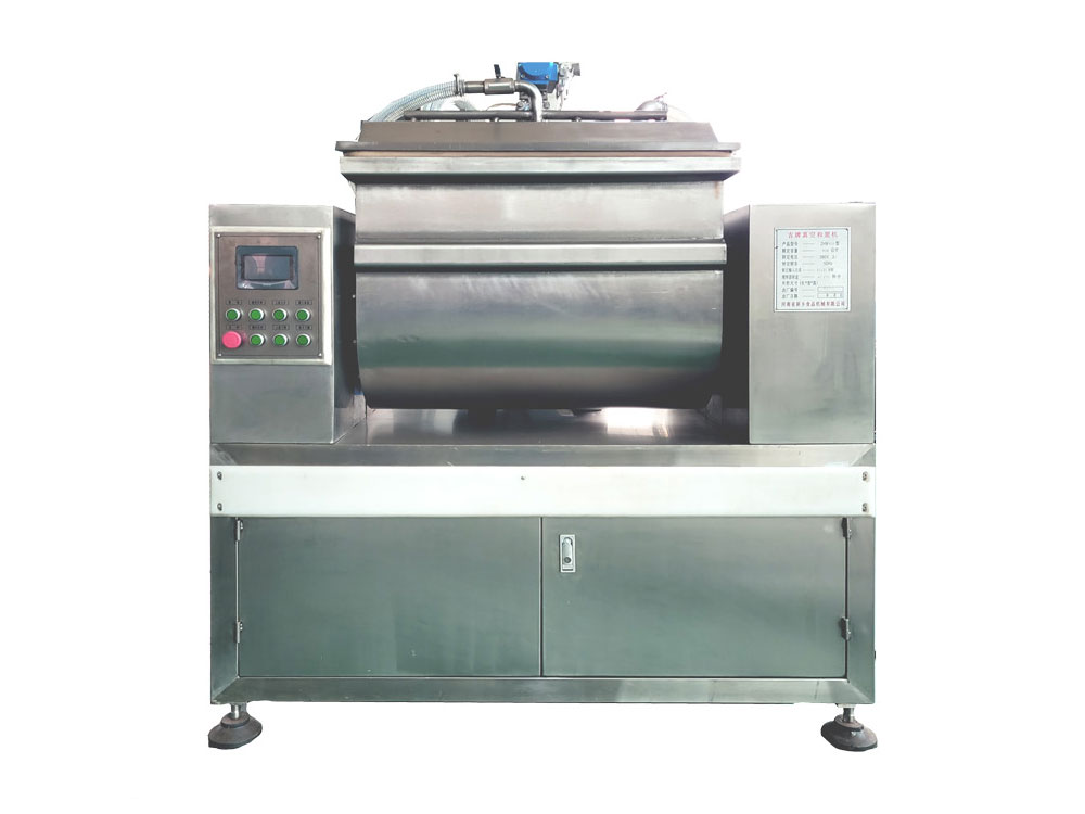 →臥式真空和面機系列  →型號50/75/100/150/200/300型  →功能  主要用來和制餃子皮、餛飩皮、鮮食面、水煮面、掛面等,若更換攪拌器,可適用于速凍行業(yè)的各種面食制品的加工?!  厣 ?、配備智能觸控顯示屏,參數(shù)自由設(shè)定,可手動攪拌、可一鍵攪拌。并可根據(jù)工藝設(shè)定和面時間和真空度?! ?、設(shè)備由PLC控制,可實現(xiàn)自動起蓋、自動計量加水、自動翻斗、自動進粉、抽真空和面(拌粉)、自動排面功能?! ?、獨特的密封結(jié)構(gòu),有效防止面團受到污染,進一步提高食品安全?! ?、和面過程在真空負壓下進行,使面粉中的蛋白質(zhì)在短時間、充分的吸收水分,形成面筋網(wǎng)絡(luò),從而使面團外表光滑、內(nèi)部結(jié)構(gòu)均勻,透明度高、口感好?! ?、可定制面斗冷卻系統(tǒng),使成品面團溫度恒定,確保批量生產(chǎn)的產(chǎn)品質(zhì)量穩(wěn)定。  6、設(shè)備主體采用不銹鋼制造,符合現(xiàn)行有關(guān)食品衛(wèi)生標準。  →主要技術(shù)參數(shù)產(chǎn)品型號額定容量(kg)攪拌轉(zhuǎn)速(rpm)主電機(kW)副電(kW)外形尺寸(長×寬×高)ZHW  50型50板式40 攪棒44/887.51.11470×932×1483ZHW  75型75板式40 攪棒44/88111.851440×890×1655ZHW 100型100板式40 攪棒44/88111.851440×890×1794ZHW 150型150板式40 攪棒44/88221.851764×1070×1815ZHW 200型200板式40 攪棒44/88221.851964×1070×1815ZHW 300型300板式40 攪棒44/883432074×1170×2022板式攪拌器滾杠-真空油條包子狼牙棒攪拌器
