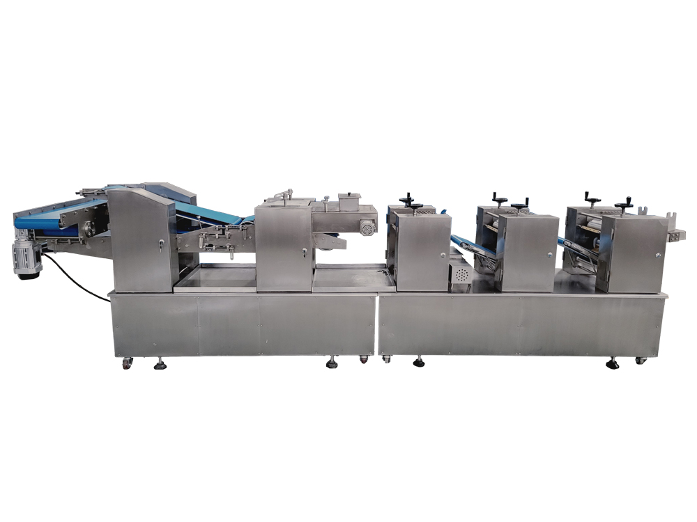 3、設備為變頻控制,每一道壓輥都采用單機驅(qū)動,通過測距傳感器,實現(xiàn)自動面帶張緊控制,多輥聯(lián)動??焖佥p松地制作大量面皮,提高生產(chǎn)效率。